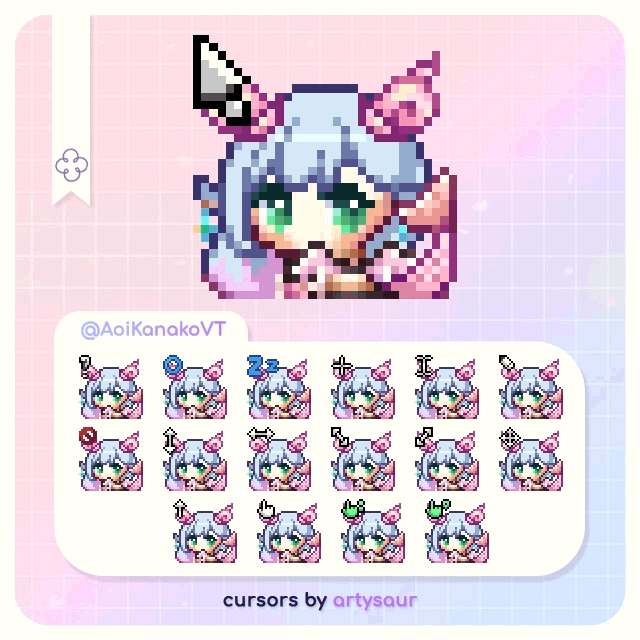 Small Aoi to run around your monitor screen freely! >w<Pixel cursors that includes: